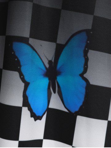 Plus Size Butterfly Checkerboard Crisscross A Line Sleeveless Dress - Black - S | Us 8