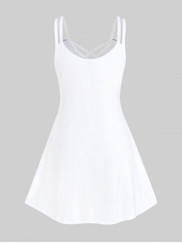 Plus Size Butterfly Criss Cross Two Tone A Line Sleeveless Dress - White - 5x | Us 30-32