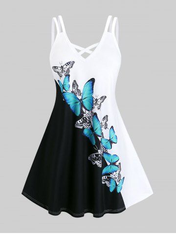Graphic Dresses > Plus Size Butterfly Criss Cross Two Tone A Line Sleeveless Dress