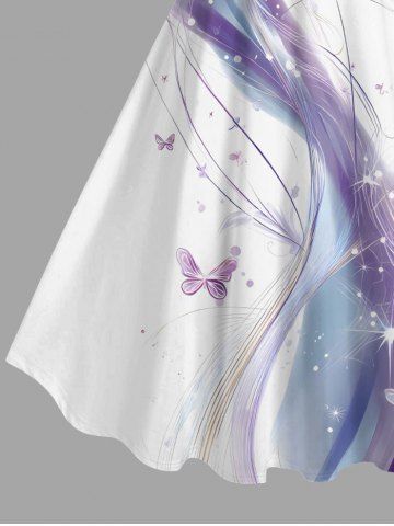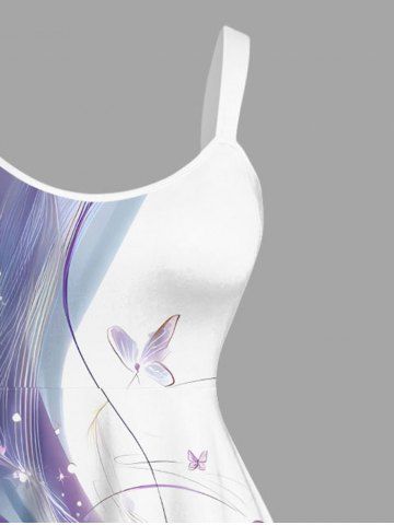 Plus Size Butterfly Curve Colorblock Glitter 3D Print Hawaii Tank Dress - White - M