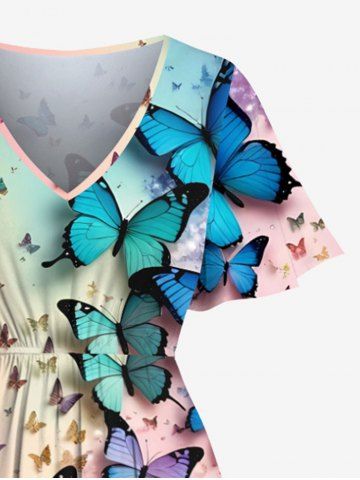 Graphic Dresses > Plus Size Butterfly Ombre Print Split Hawaii Midi Dress