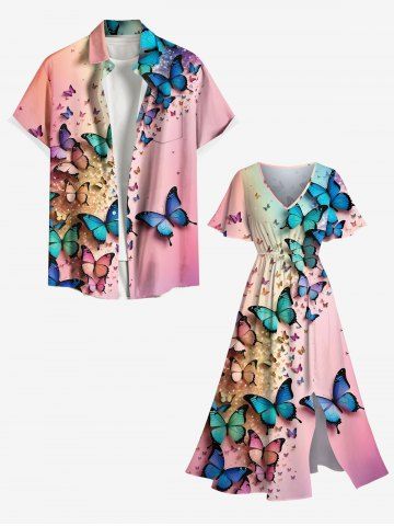 Graphic Dresses > Plus Size Butterfly Ombre Print Split Hawaii Midi Dress
