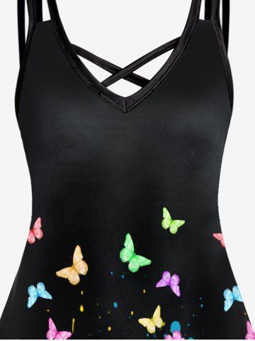 Plus Size Butterfly Paint Splatter Printed Sleeveless A Line Dress - Black - 1x | Us 14-16