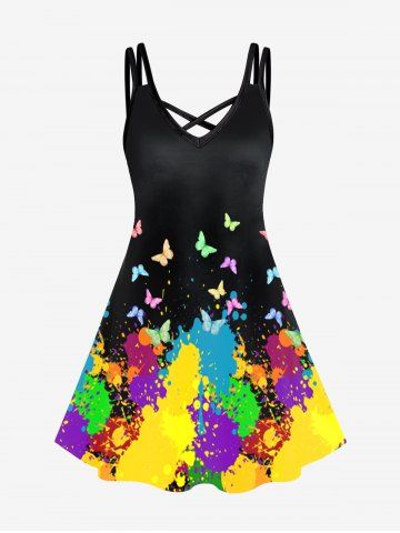 Graphic Dresses > Plus Size Butterfly Paint Splatter Printed Sleeveless A Line Dress