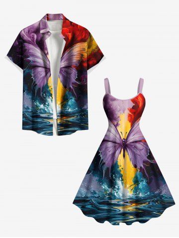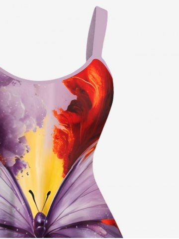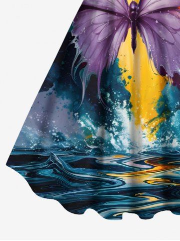 Plus Size Butterfly Sea Waves Painting Print Hawaii A Line Dress - Purple - S