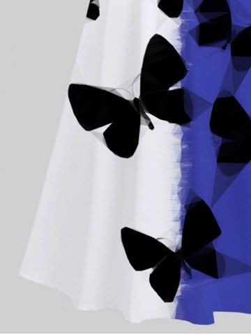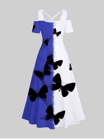 Graphic Dresses > Plus Size Butterfly Two Tone Patchwork Print Hawaii Crisscross A Line Maxi Dress