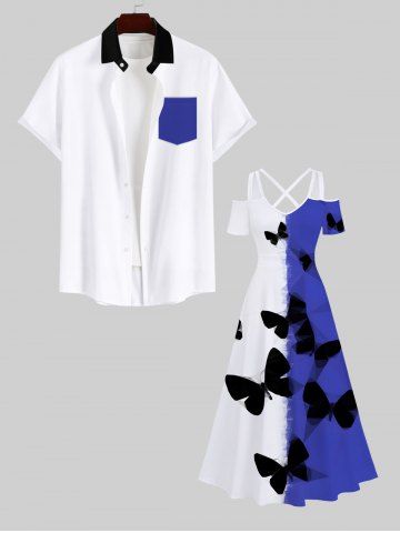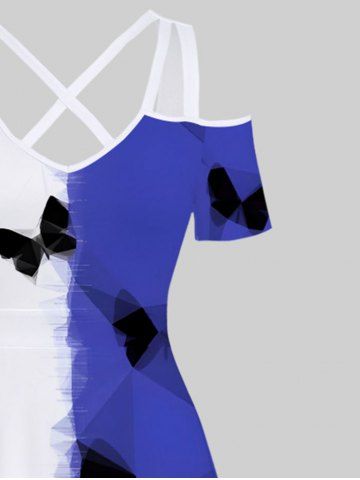 Plus Size Butterfly Two Tone Patchwork Print Hawaii Crisscross A Line Maxi Dress - Multi-a - 1x