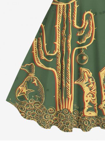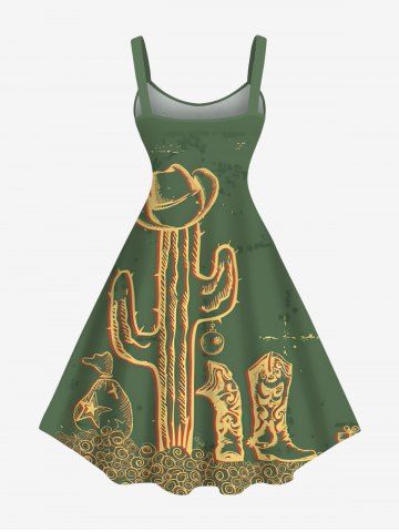 Plus Size Cactus Hat Boots Bags Print Hawaii A Line Tank Dress - Green - Xxs