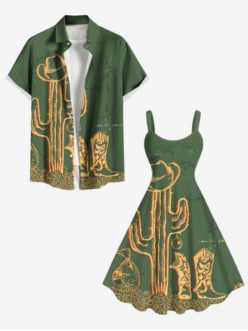 Plus Size Cactus Hat Boots Bags Print Hawaii A Line Tank Dress - Green - 5x
