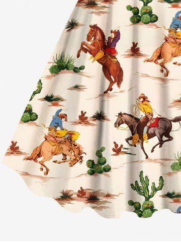 Graphic Dresses > Plus Size Cactus Horse Knight Print Hawaii A Line Tank Dress