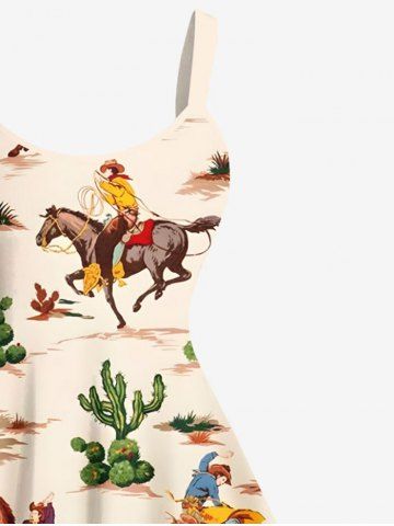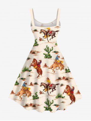 Plus Size Cactus Horse Knight Print Hawaii A Line Tank Dress - Light Coffee - 1x