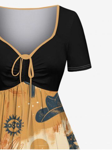 Plus Size Cactus Plant Hat Floral Desert Print Hawaii Cinched A Line Dress - Coffee - L