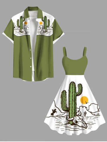 Plus Size Cactus Sun Ship Head Print Hawaii Tank Dress - White - 5x
