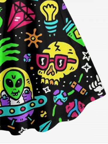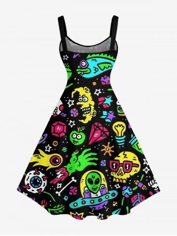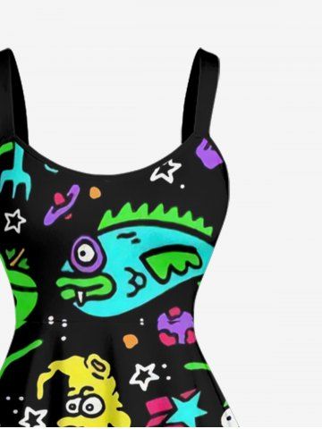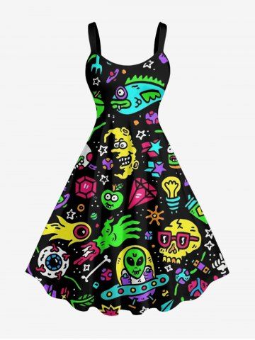 Plus Size Cartoon Graphic Print Hawaii A Line Dress - Black - Xxs