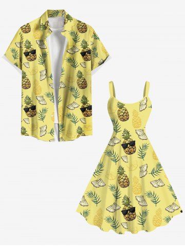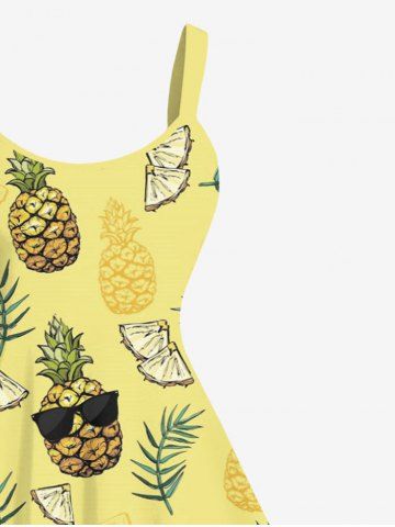 Plus Size Cartoon Pineapple Tropical Leaves Print Hawaii A Line Tank Dress - Yellow - Xxs