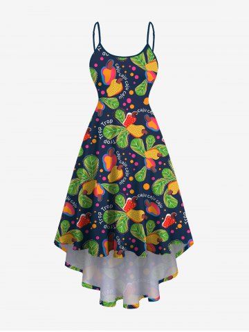 Graphic Dresses > Plus Size Cashew Leaf Colorful Polka Dot Print Hawaii High Low Asymmetric A Line Backless Cami Dress