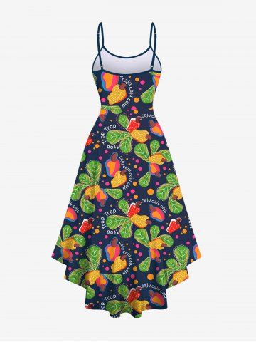 Graphic Dresses > Plus Size Cashew Leaf Spotted Print Hawaii High Low Asymmetric A Line Cami Dress