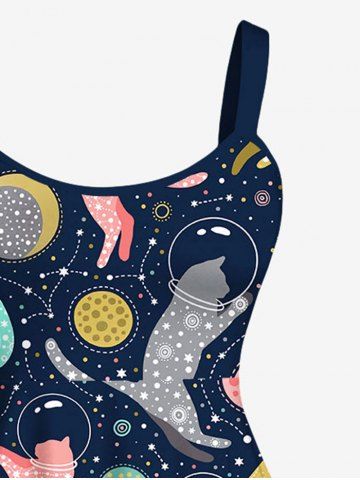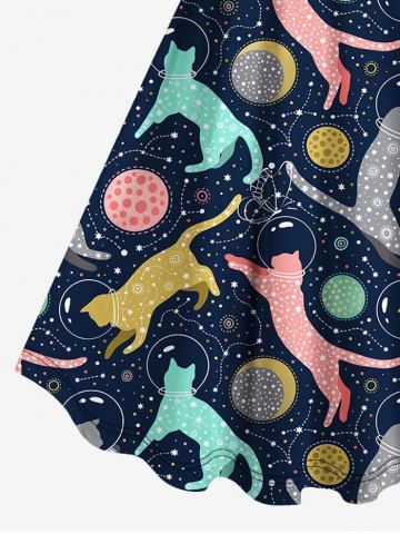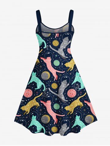 Graphic Dresses > Plus Size Cat Bubble Moon Planet Galaxy Butterfly Print Backless A Line Tank Dress