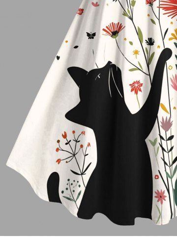 Plus Size Cat Flowers Butterfly Print Hawaii Tank Dress - White - Xxs