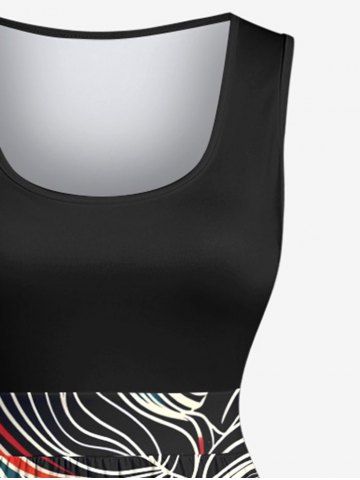 Plus Size Cat Line Fluid Print 50s Vintage Swing A Line Dress - Black - M