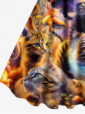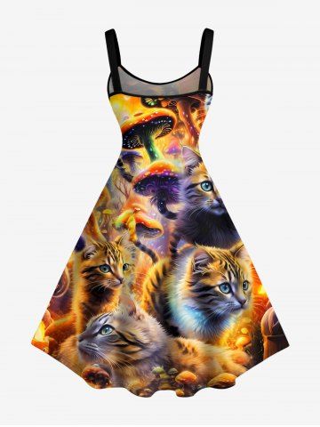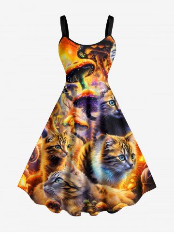 Graphic Dresses > Plus Size Cat Mushroom Print Hawaii A Line Dress