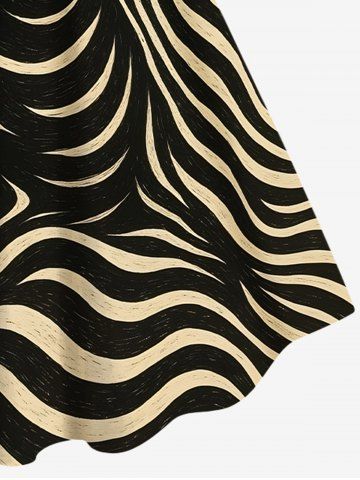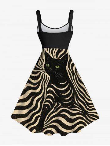 Plus Size Cat Wave Striped Print Halloween A Line Tank Dress - Black - M