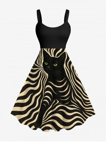 Graphic Dresses > Plus Size Cat Wave Striped Print Halloween A Line Tank Dress
