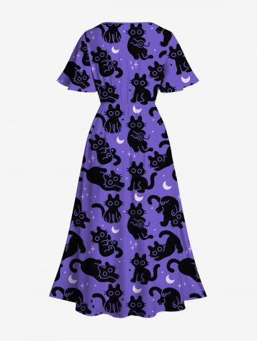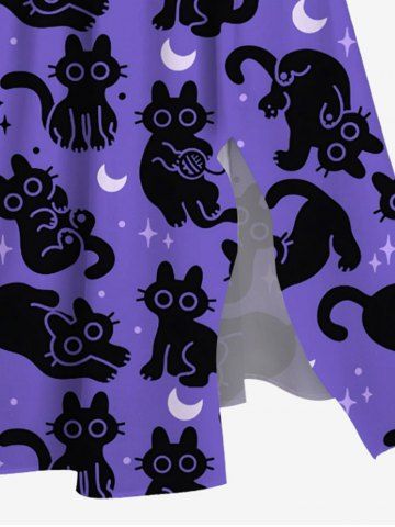 Plus Size Cats Star Moon Print Split Midi Dress - Purple - M