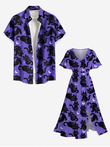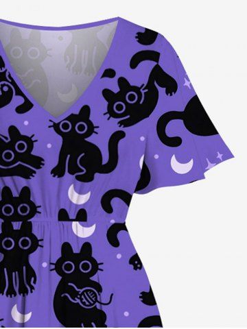 Plus Size Cats Star Moon Print Split Midi Dress - Purple - 6x