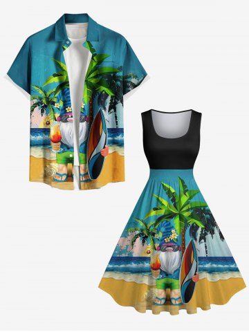 Plus Size Christmas Santa Claus Coconut Tree Beach Print Hawaii Vintage Swing A Line Dress - Black - S