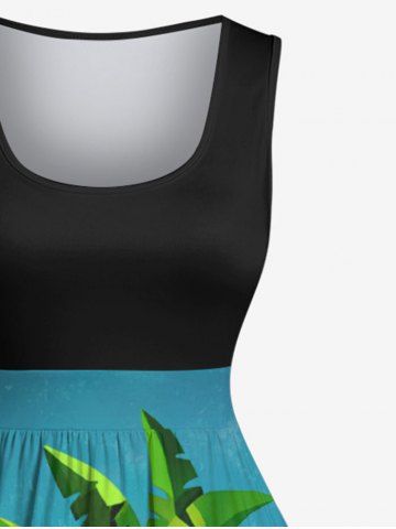 Plus Size Christmas Santa Claus Coconut Tree Beach Print Hawaii Vintage Swing A Line Dress - Black - 3x