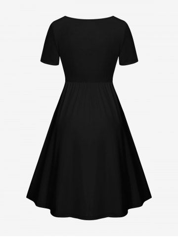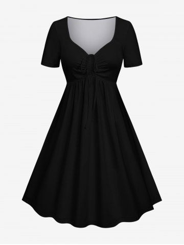 Plus Size Cinched Solid A Line Dress - Black - Xxs