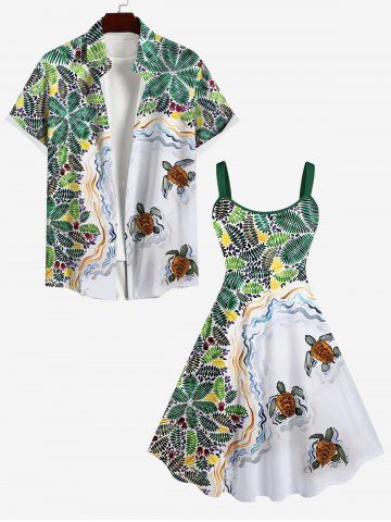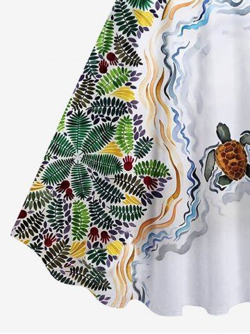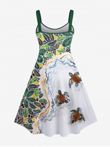 Graphic Dresses > Plus Size Coconut Leaves Turtle Sea Waves Print Hawaii Sea Creatures Backless A Line Tank Dress
