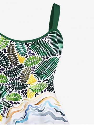 Plus Size Coconut Leaves Turtle Sea Waves Print Hawaii Sea Creatures Backless A Line Tank Dress - Multi-a - 4x