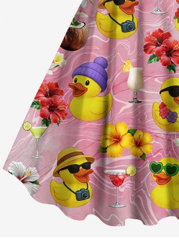 Plus Size Coconut Pineapple Duck Hibiscus Flower Print Hawaii A Line Dress - Light Pink - L