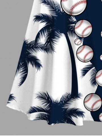 Plus Size Coconut Tree Baseball Colorblock Print Cold Shoulder Crisscross Hawaii Maxi Dress - White - 4x