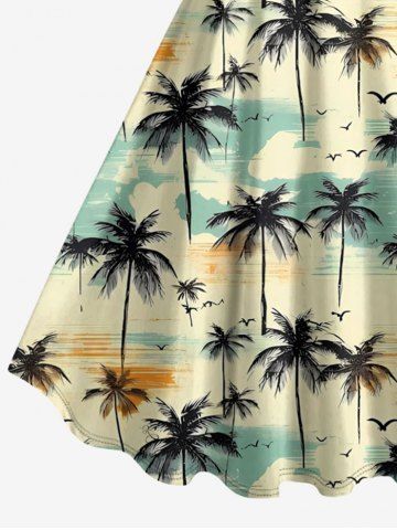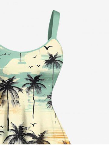 Graphic Dresses > Plus Size Coconut Tree Bird Cloud Print Hawaii Tank Dress