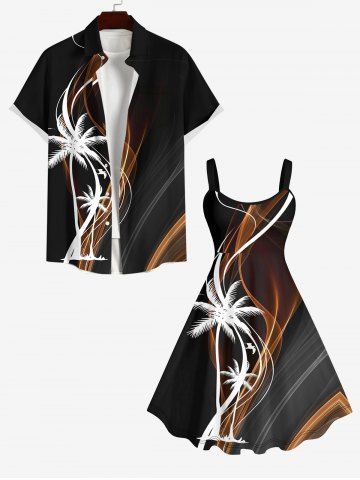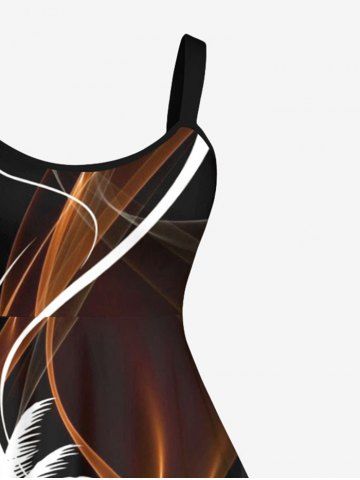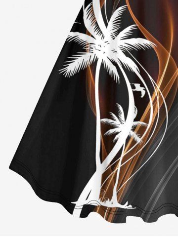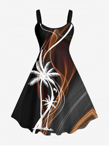 Plus Size Coconut Tree Bird Light Beam 3D Print Hawaii Tank Dress - Black - L