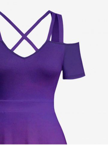 Plus Size Coconut Tree Bird Ombre Galaxy Sunset Print Hawaii Cold Shoulder Crisscross A Line Maxi Dress - Purple - Xs