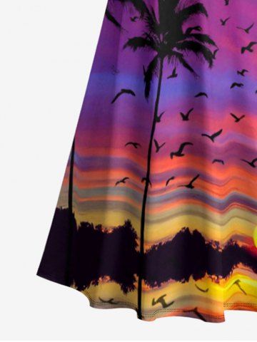 Plus Size Coconut Tree Bird Ombre Galaxy Sunset Print Hawaii Cold Shoulder Crisscross A Line Maxi Dress - Purple - 3x