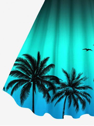 Plus Size Coconut Tree Bird Ombre Print Hawaii Tank Dress - Green - 4x