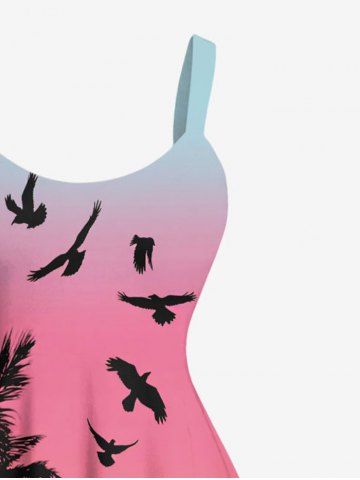 Plus Size Coconut Tree Bird Ombre Print Hawaii Tank Dress - Pink - Xxs