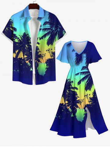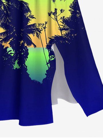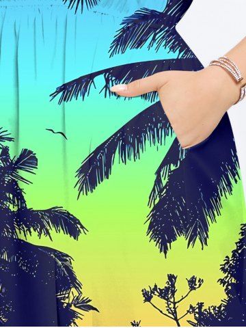 Plus Size Coconut Tree Bird Ombre Print Pocket Split Hawaii Dress - Blue - S