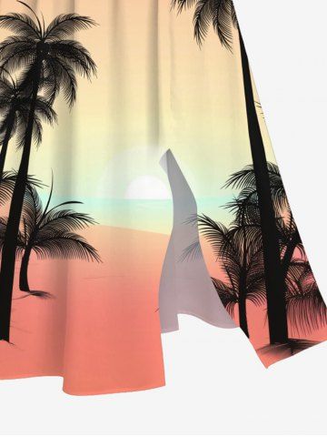 Graphic Dresses > Plus Size Coconut Tree Bird Ombre Print Split Hawaii Midi Dress