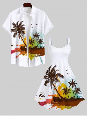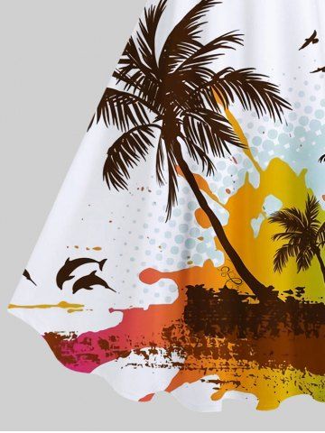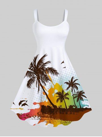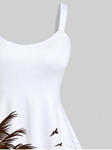 Plus Size Coconut Tree Bird Paint Splatter Print Hawaii Tank Dress - White - 6x