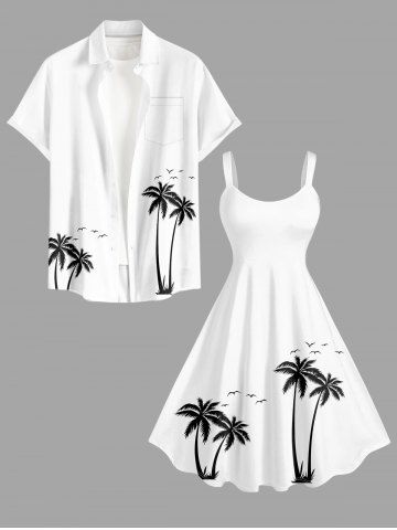 Plus Size Coconut Tree Bird Print Hawaii Tank Dress - White - 4x