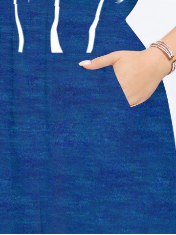 Plus Size Coconut Tree Bird Print Split Hawaii Midi Dress - Deep Blue - M