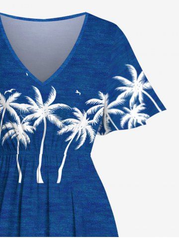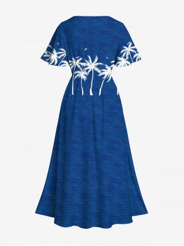Plus Size Coconut Tree Bird Print Split Hawaii Midi Dress - Deep Blue - 4x
