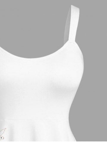Plus Size Coconut Tree Bird Rain Drop Print Hawaii Tank Dress - White - 2x