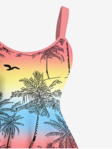 Plus Size Coconut Tree Bird Rainbow Ombre Colorblock Print Hawaii Tank Dress - Red - 1x